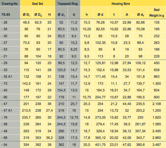 Mechanical Face Seal Type 76.95 / without retaining lip sorted by ØDi